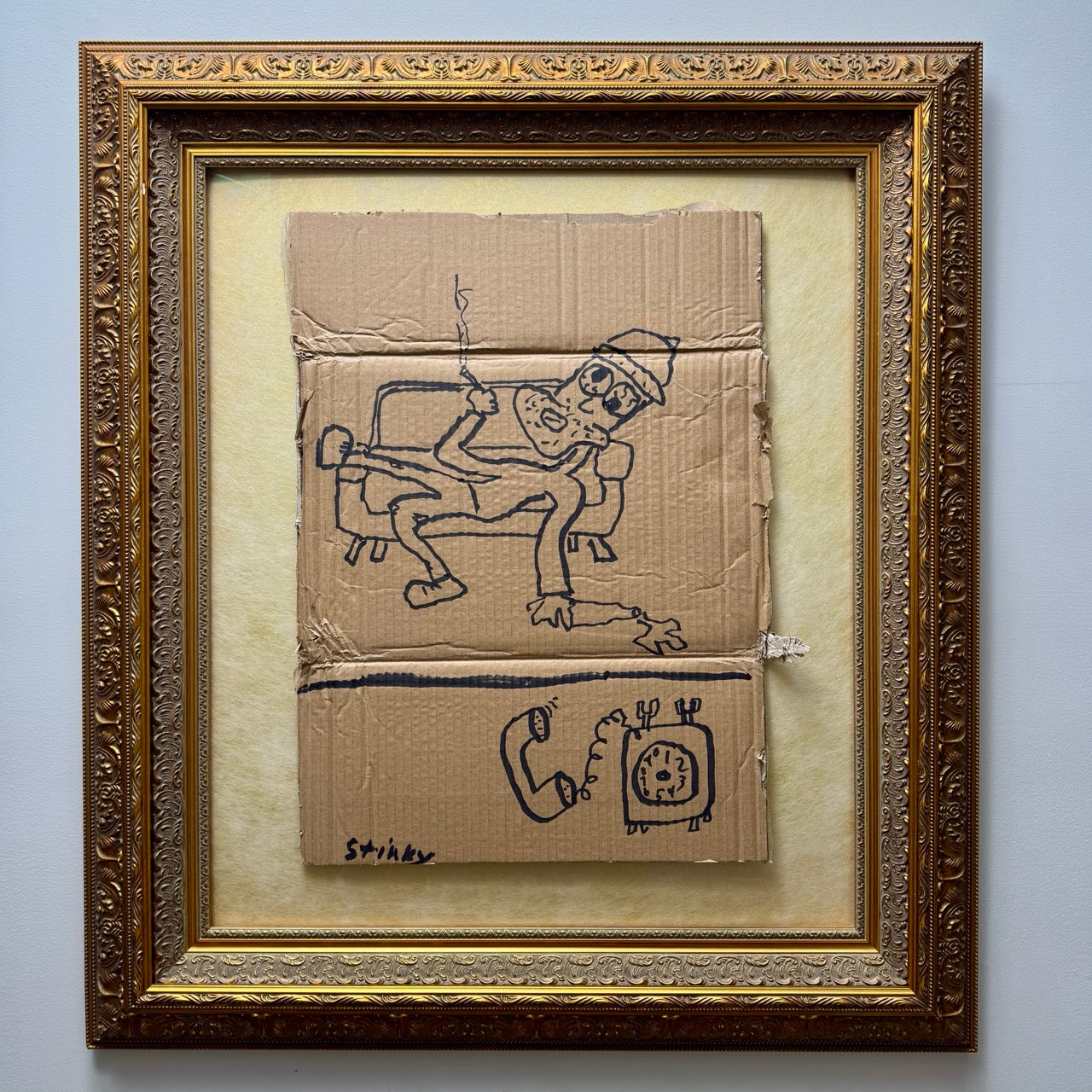 Original ink drawing on reclaimed cardboard. Signed by the artist.