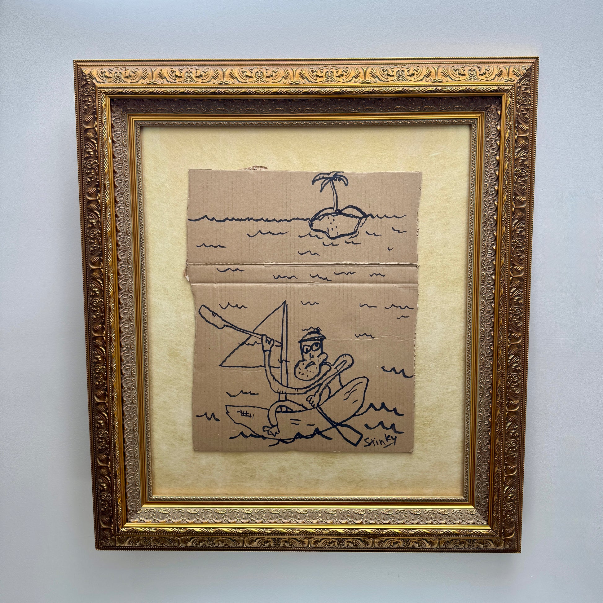 Black marker on cardboard.